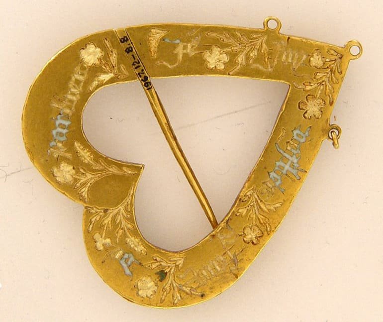 من در سال 2011 به موزه بریتانیا در لندن رفتم تا مجموعه‌ای از آثار هنری دست‌ساز قرن 15 را ببینم که شامل بخشی از سکه‌های طلا و جواهراتی بود که در سال 1966 در انگلستان کشف شده بود. یک سنجاق سینه قلبی شکل به ویژه نظر مرا به خود جلب کرد.