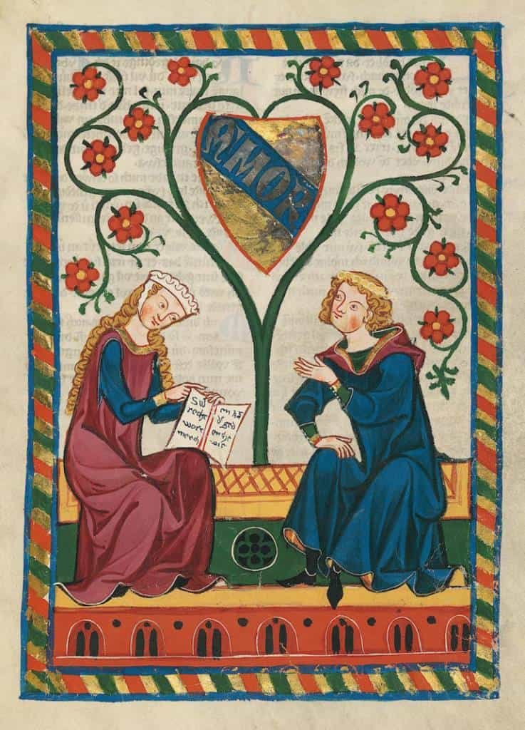 تصویری از کتاب Codex Manesse، هنرمند ناشناس. این کتاب در کتابخانه دانشگاه هایدلبرگ در آلمان نگهداری می‌شود.