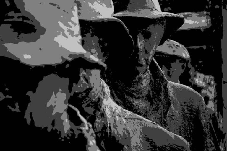 پیرمردی در ردیف جلو نشسته، از حالت نیمهخیز برمیگردد، دوباره روی چوکی مینشیند. دستی به سرش میکشد. کف دست از عرق تر میشود. روی زانویش میمالد. هر دو دستش را روی صورت میگیرد. ریش سیاه و سفیدش را میخاراند.