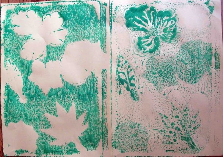 بچههای بزرگتر میتوانند با ابزارهایی مثل گوشپاککن یا مداد ضخیم (که تیز نباشد) و کمی رنگْ روی سینی نقاشی کنند و تصویر آن را با اندکی فشار روی یک برگهٔ کاغذ منتقل کنند. آنها همچنین میتوانند اشکالِ کاغذی یا برگهای گیاه را همچون شابلون برای نقاشی با رنگ استفاده کنند. رنگآمیزی با لوازم خانه، بازیِ سادهایست که حتی بچههای خیلی کمسن میتوانند با اشیاء سادهٔ موجود در خانه و کمی رنگ آن را تجربه کنند. هر چیزی را میتوان در رنگ زد ــ اسفنج، لوله مقوایی، لوازم آشپزخانه، کفگیر، اسباببازی حیوانات، ماشین اسباببازی و غیره ــ و همچون قلموی نقاشی به کار برد.