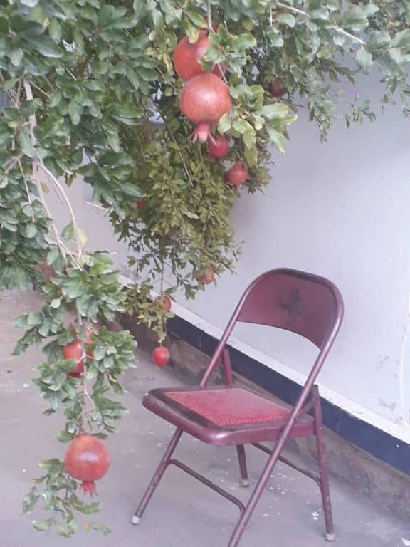 روی حویلی برآمدیم. خوشه‌‌های لعل سبز در خریطه ‌های جالی سفید بر تاک آویزان بودند و زنبور‌های سرگردان در زیر تاک فاصل‌های که جالی سفید با انگور ایجاد کرده بود را باور نمی‌توانستند.
