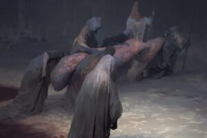 هر چند مردم خیلی از جزییات مراسم قرعهکشی را فراموش کرده بودند و جعبه اصلی هم سیاه شده بود، اما هنوز میدانستند از سنگ چطور استفاده کنند. همه به سمت کپهٔ سنگی رفتند، که بچهها از قبل آماده کرده بودند…